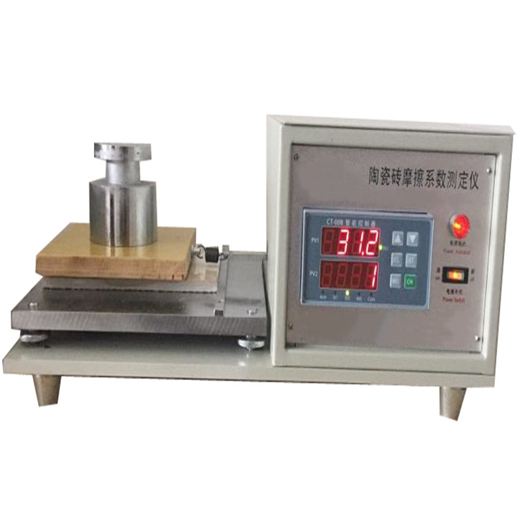 ZB-553型瓷磚摩擦系數(shù)測定儀采用微電腦測力控制儀和高精度拉力傳感器組成測力系統(tǒng),具有測力精度高,性能穩(wěn)定,自動顯示測試結(jié)果,可循環(huán)顯示拉力和磨擦系數(shù)值等特點。符合GB/T4100-2015標準,方法B靜滑塊法,是陶瓷地板磚磨擦系數(shù)測定的理想設備。